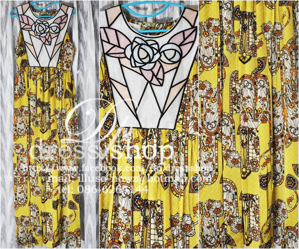 6.D0092 Dress Kloset style ลายกระจก ผ้าซาติน งานดีมากๆๆๆ เหลือสีเดียวตัวเดียวแล้ว สีเหลืองจ้า