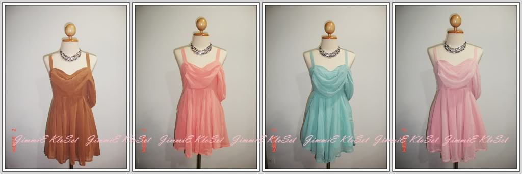 10. เดรสไหล่ตกผ้าชฟอง แพทเทินเหมือนของจริง มีสีเขียวมิ้นค่ะ ราคา490.-