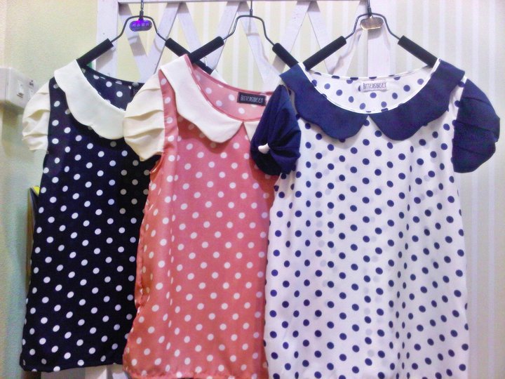 ผ้าชีฟองลายจุด ตกแต่งด้วยตุ๊กตาน่ารัก อก36 ยาว24