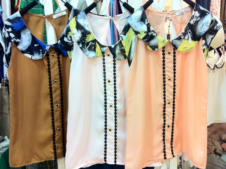 ชีฟองเนื้อทรายแขนกุด ปกและขอบแขนแต่งด้วยลูกไม้ คอหยดน้ำ 300 บาท อก 36 ยาว 24 นิ้ว
