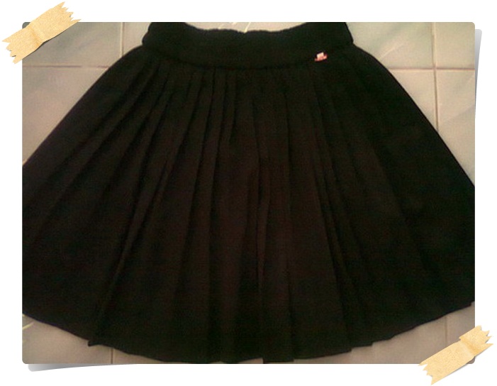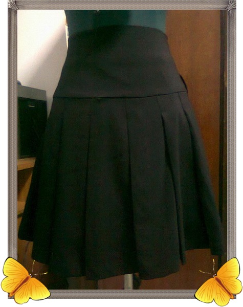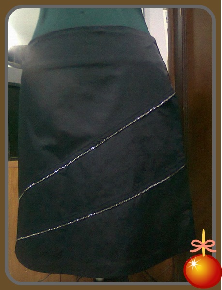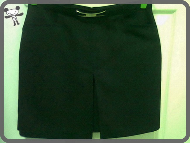 4. k20 กระโปรงผ้าสีดำ ด้านหน้ามีตัดเป็นเพชรสองเส้น รูดซิปด้านหลัง เอว 30" ยาว 16" สะโพก 35"