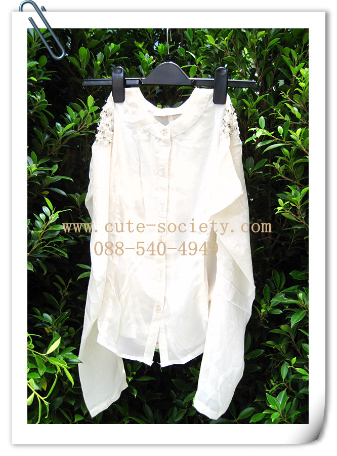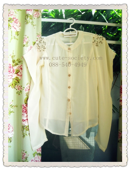 รหัส 1106-023 : เสื้อแขนยาวกระดุมหน้า เก๋ๆที่แขนเสื้อปักมุก และเย็บให้เป็นทรงเหลื่ยมค่ะ ใส่แล้วดูดีมากๆค่ะ ผ้าชีฟองนิ๊ม นิ่ม ใส่สบายมาก ราคา 490 บาทค่ะ