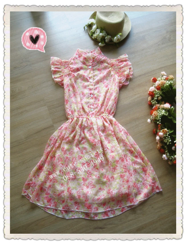 รหัส 1106-006 : เดรสผ้าชีฟองพริ้ว แขนระบาย ลายดอกกุหลาบสีชมพูค่ะ standard size พร้อมซับในกระโปรงค่ะ ราคา 590 บาทค่ะ