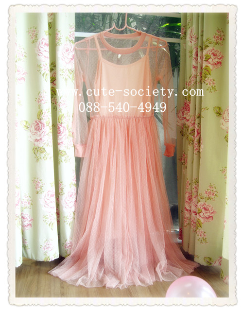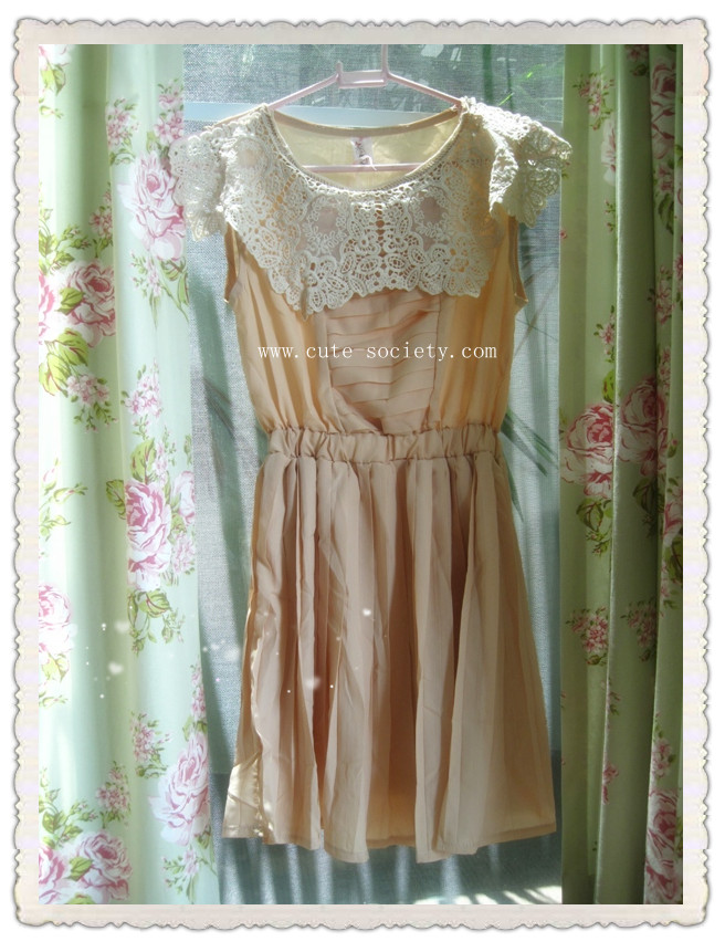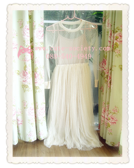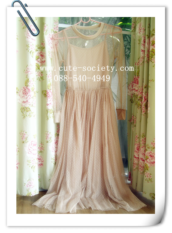 รหัส 1106-008 : Korean style...เดรสสีเนื้อ ใสๆ ได้อีก กับชุดผ้าไหม ขอบลูกไม้ กระโปรงอัดพลีต ดีเทลผู้หญิงแบบเกาหลีค่ะ ราคา 590 บาทค่ะ