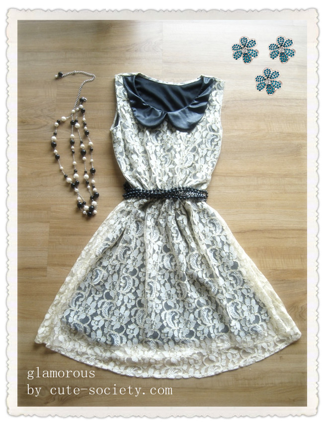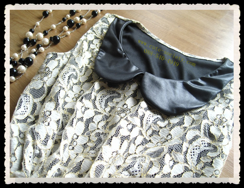 รหัส 1106-014 : Vintage lover ... Lace dress in black & gold ผ้าลูกไม้สีครีมขอบทอง สวยงามมากๆ ซับในและคอบัวสีดำค่ะ หรูหรา ดูดี ฟรีไซด์ค่ะ ราคา 440 บาทค่ะ