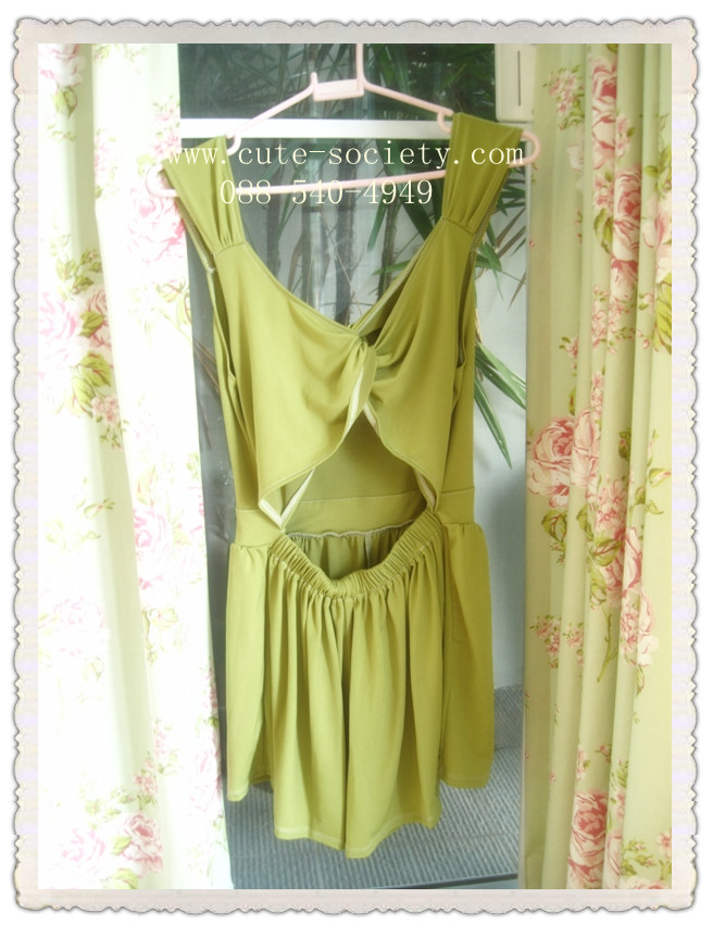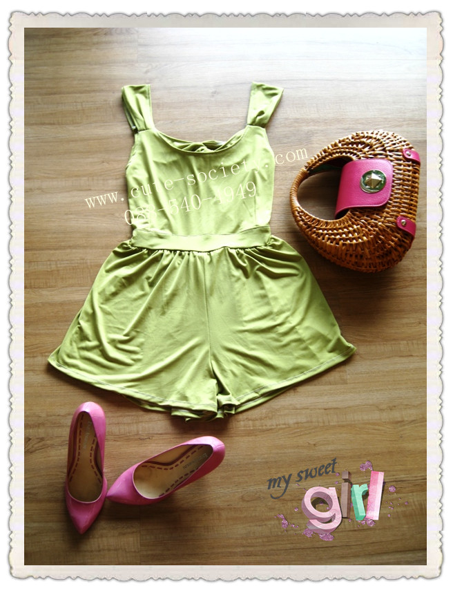 รหัส 1106-033 : playsuit สีเขียวตอง เซ็กซี่ด้านหลังด้วยผ้าผูกไขว้กัน แบบสาว vivi ต้องมีไว้ใส่บ้างซักตัวนะคะ ราคา 440 บาทค่ะ
