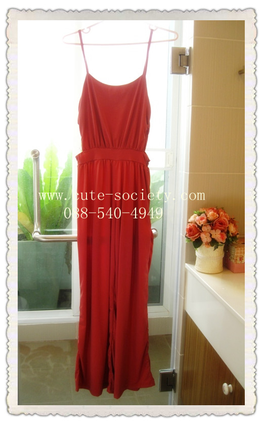 รหัส 110-020 : sexy for more....กับจั๊มสูทขายาวผ้ายืดเนื้อทิ้งตัวสีส้มแดง แอบเรียกสายตาด้วยช่วงเว้าเอวสุดเปรี้ยว ราคา 590 บาท