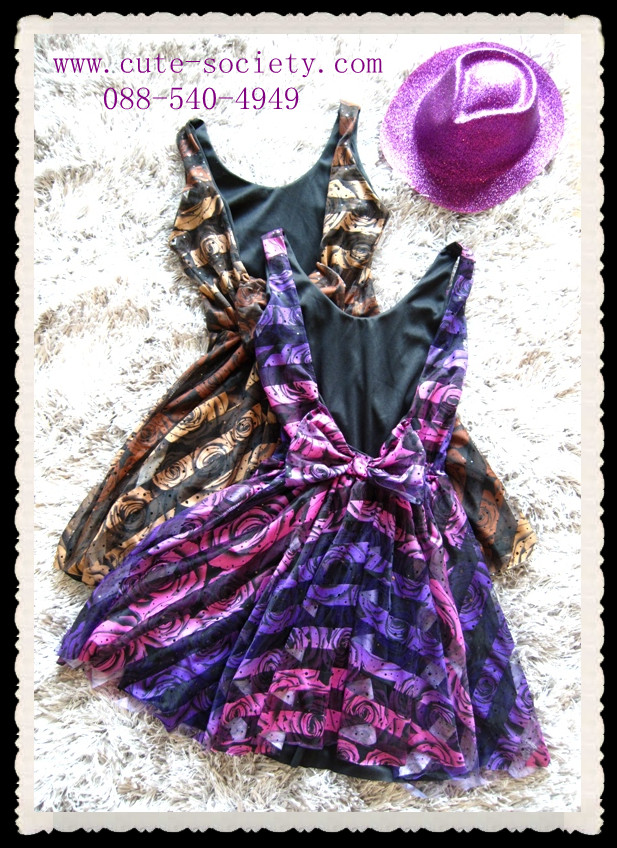 รหัส 1106-026 : cute and sexy dress ... ลายดอกกุหลาบให้ลุคหวานๆ และเซ็กซี่ด้วยเว้าหลังลึกและผูกโบว์ น่ารักกว่าใครมีสีม่วงชมพูค่ะ ราคา 530 บาทค่ะ