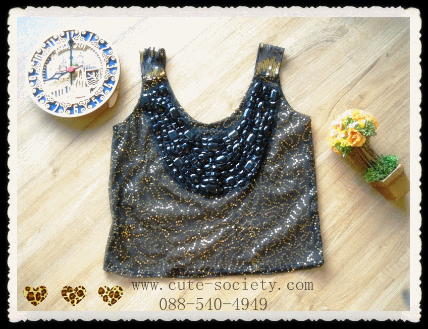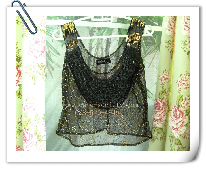 รหัส 1106-038 : เสื้อผ้าโปร่่งปักเลื่อมสีทอง ด้านหน้ามี jewelry เก๋ๆไม่ซ้ำใครค่ะ ราคา 540 บาทค่ะ