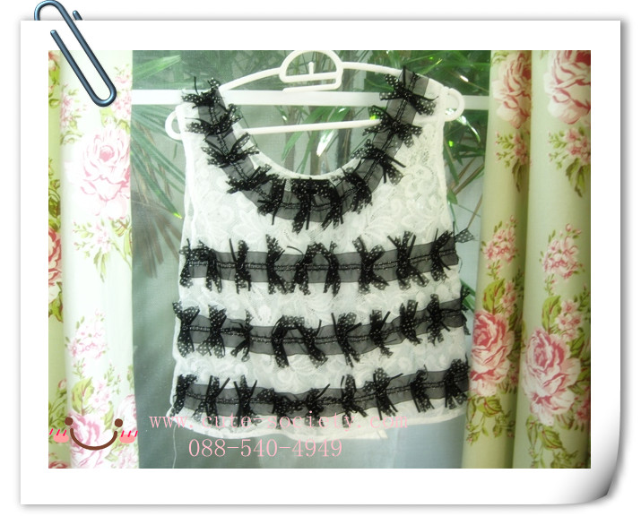 รหัส 1106-034 : cute ribbon top ผ้าลูกไม้ขาว ตัดกับริบบิ้นผูกโบว์สีดำ เสื้อสวยๆที่ต้องมีซักตัว...ราคา 470 บาทค่ะ