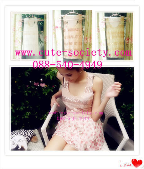 รหัส 1106-035 : เดรสปักเลื่อมสีทอง ด้านหลังผ้ายืดสีดำ เอาไว้ใส่ไปงานเก๋ๆ เรียกสายตาได้ดีเลยค่า... ราคา 450 บาทค่ะ