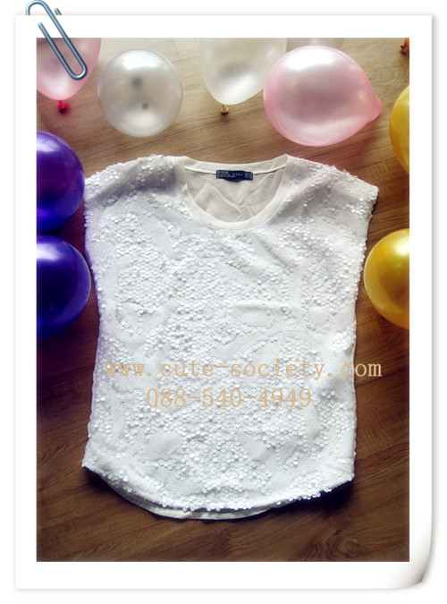รหัส 1106-039 : เสื้อกล้ามผ้าลูกไม้สลับเลื่อมสีขาว ผ้าด้านหน้าเป็น 2 ชั้นนะคะ ด้านหลังเป็นผ้ายืดติดกากเพชรค่ะ ใส่แล้วสวยค่ะ มีสีขาวสีเดียวนะคะ ขาย 380 บาทค่ะ