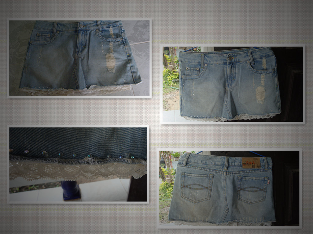 กระโปรงยีนส์เอวต่ำ แอบมีลูกไม้ระบายเล็กๆ