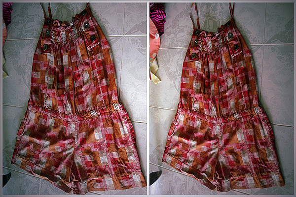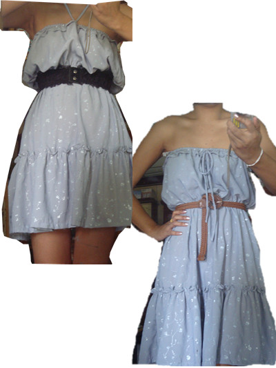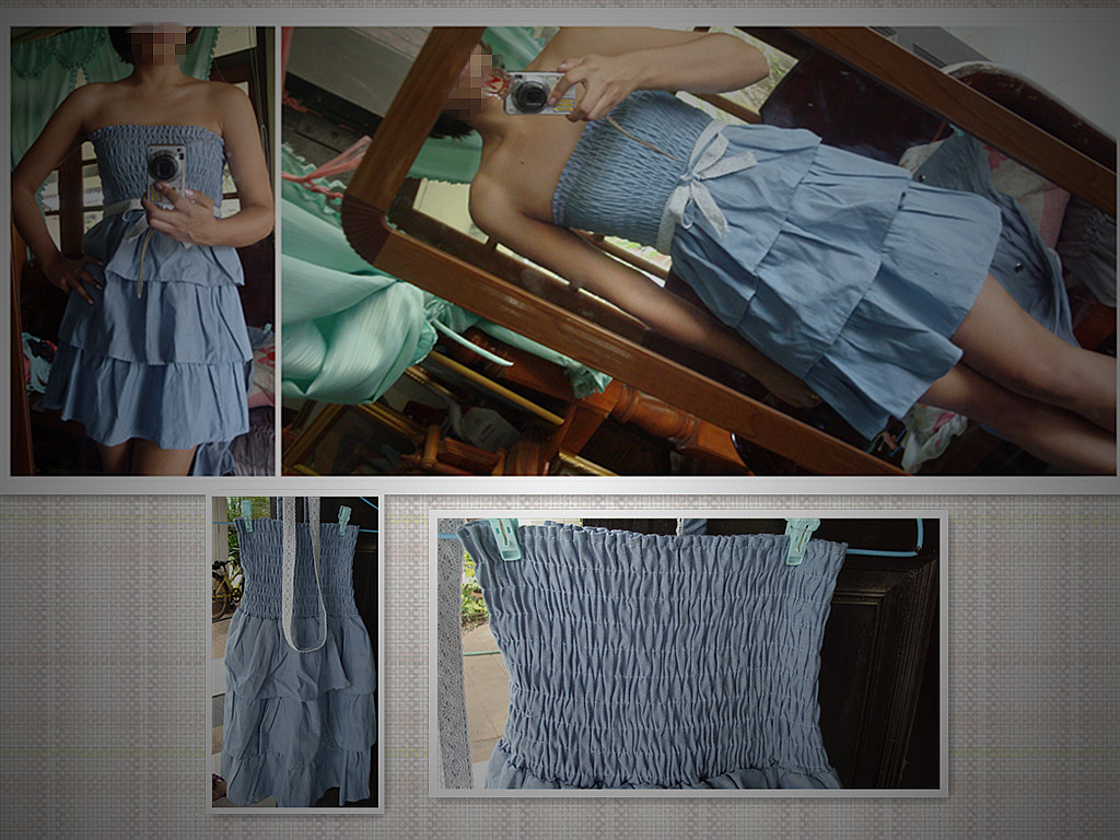 เดรสเกาะอกยีนส์ ผูกคอ กระโปรงระบายเป็นชั้นๆหลายๆชั้น น่ารัก จะใส่กะเสื้อคลุมก็ได้ ใส่เดี่ยวๆก็ได้ แม่ค้าซื้อมาไม่ได้ใส่ไปไหนเลย หน้าอกเล็กเลยใส่ไม่สวย T_T