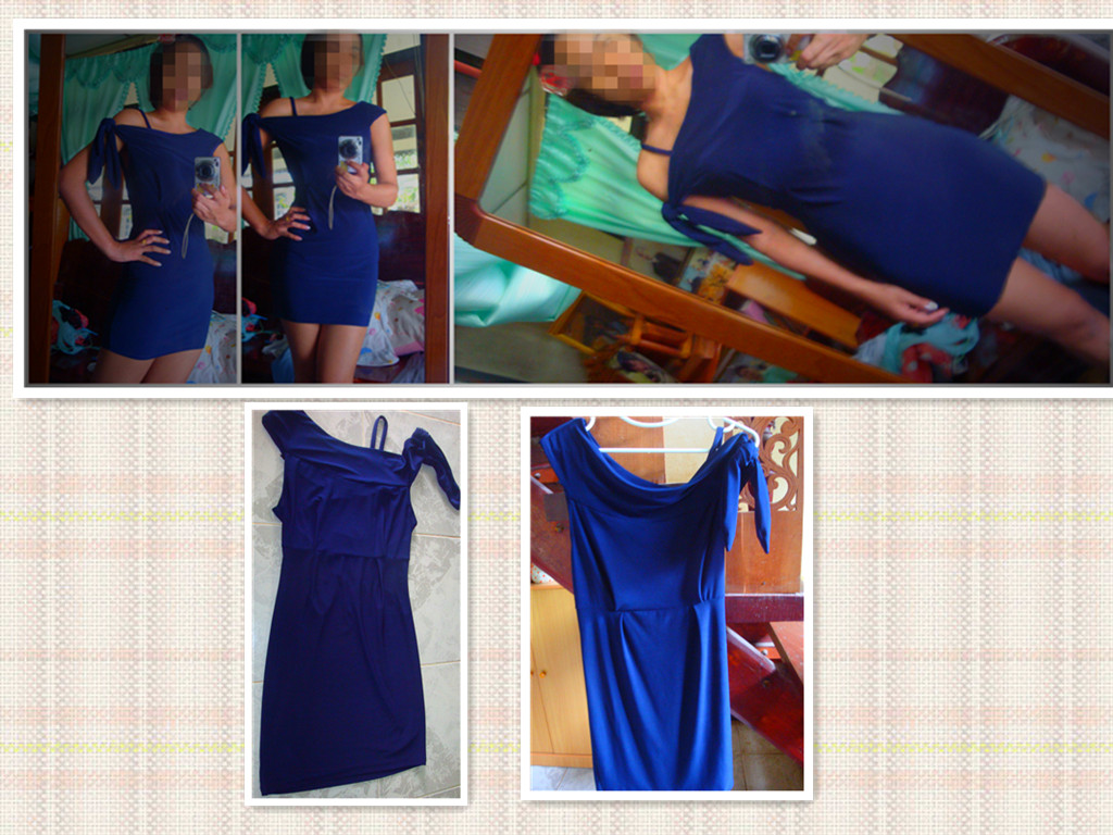เดรสรัดรูปบ่าเดียว ใส่แล้วดูไม่อ้วนนะ เพราะแม่ค้าเป็นคนอ้วน อีกด้านจะมัดที่ไหลหรือจะมัดที่แขนก็ได้ ตามสะดวก ซื้อมาก็ไม่ได้ใส่เช่นเดียวกัน ลองๆๆเล่นๆแล้วก็แขวนเก็บ ยาว 31 นิ้ว อกยืดได้ถึง 39 นิ้ว ใส่ไปปาร์ตี้ก็ดูดีนะ ไม่โป๊มาก แนะนำให้ใส่กางเกงรัดรูปข้างใน เพราะผ้าไม่หนาเท่าไหร่