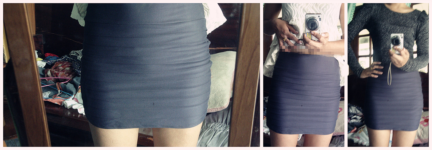 กระโปรงบอดี้คอนสีเทา ผ้าหนานุ่มใช้ได้ ใส่แล้วไม่ค่อยเห็นรอยกางเกงใน แม่ค้าใส่ไปแล้ว 1 ครั้ง