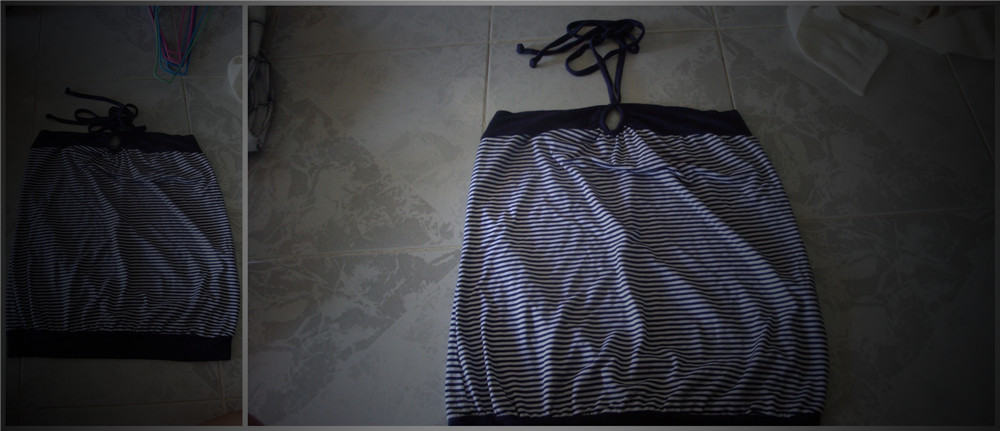 24. เกาะอกผ้ายืดนุ่มนิ่ม ลายทางๆ จะผูกคอหรือผูกโบว์ก็ได้