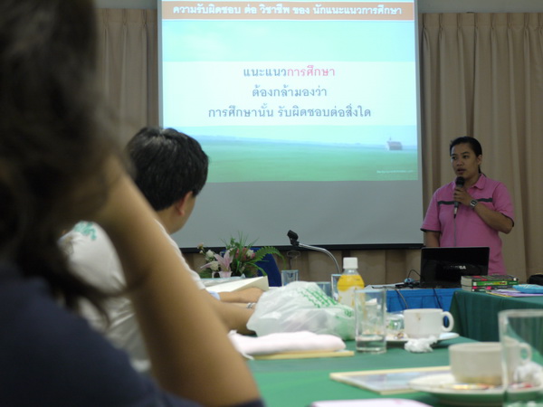 เป็นอย่างไรกันบ้างครับ กับภาพ บรรยากาศ สัมมนาการศึกษาครั้งนี้ ดูๆแล้วรู้สึกอย่างไรกันบ้างครับ ส่วนตัวผมที่ได้มีโอกาสเข้าไปสัมผัสจริง ภาพที่ผมเห็นคือภาพของคุณพ่อ คุณแม่ ที่รับผิดชอบต่อความรัก เสียสละเวลามาเพื่อหาแนวทางการศึกษาที่ควร ต่ออนาคตและชีวิตของคุณลูก โดยตัวผมเองเมื่อได้ฟังก็รู้สึกโดนครับ มองดูตัวเองคงต้องยอมรับว่าชีวิตการศึกษาที่ผ่านมาผิดพลาดมาไม่น้อย แม้ว่าจะพยายามเรียนจนได้รับการประเมินผลอยู่ในเกณฑ์ดีมาโดยตลอด แต่พอมาฟังและทบทวนตัวเองดูกลับพบว่าตัวเองไม่ได้รู้จริงในเรื่องที่เลือกเรียน แต่ที่ผ่านมาเรียนเพื่อสอบ ไม่ได้ตอบเหตุผลของตัวเองที่ต้องการเรียนเพื่อนำความรู้ไปใช้ประกอบอาชีพเลย ถามตัวเองตอนนี้คงตอบไม่ได้ว่าจะนำสิ่งที่เรียนมาไปประกอบอาชีพได้อย่างไร นอกจากไปหางานทำ งานที่คนอื่นบอกให้ทำ คงไม่สามารถกำหนดงานที่จะทำเหมือนดั่งที่เคยตั้งใจไว้เมื่อก่อน ยังไงก็ดีใจที่ได้รู้ครับ จะได้แก้ไขทัน ท้ายสุดอยากบอกว่าพี่ดีใจแทนเด็กๆ น้องๆๆเหล่านั้นด้วยนะครับ ที่อย่างน้อยก็มีโอกาสจะศึกษาในแบบที่ควร ที่สามารถกำหนกงานและวิถีชิวิตของตนเองได้ ขอบคุณครับ
