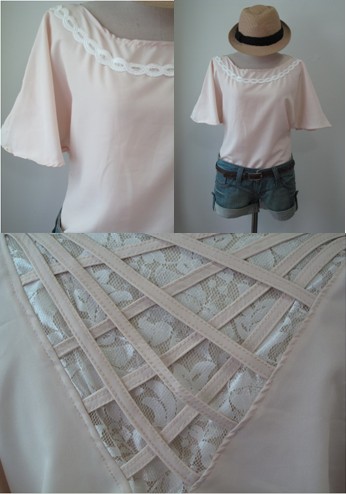 patima เสื้อแขนกว้างสีครีม ข้างหลังเก๋มากเป็นสายไขว้ ผ้าลูกไม้ อก 40 ยาว 21 ราคา 320 บาท