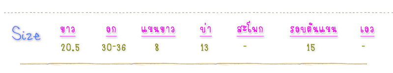 อก 36 เอว 37 ยาว 23 บ่ากว้าง 14 แขนยาว 20