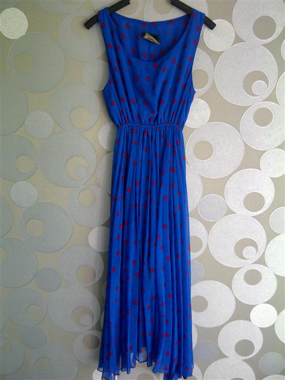 U02 : Used เดรสลายจุด น้ำเงิน-แดง เอวยางยืดค่ะ ผ้าชีฟองกระโปรงมีซับใน ค่ะ