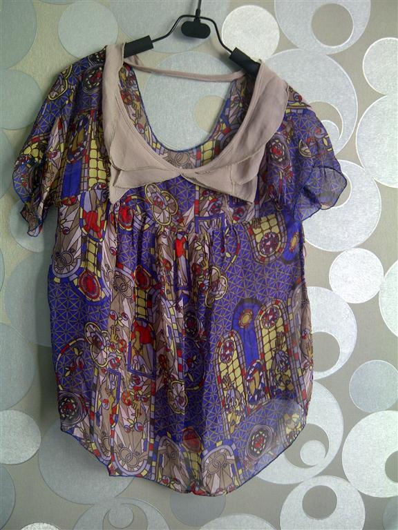 U04 : Used เสื้อลายกระเบื้องสีม่วง สไตล์Kloset ฟรีไซด์ค่ะ