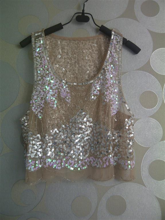 N03 : New ของใหม่ เสื้อกล้ามปักเลื่อม crop สีครีม สไตล์คุณพลอย เจนนี่ สไตล์topshop