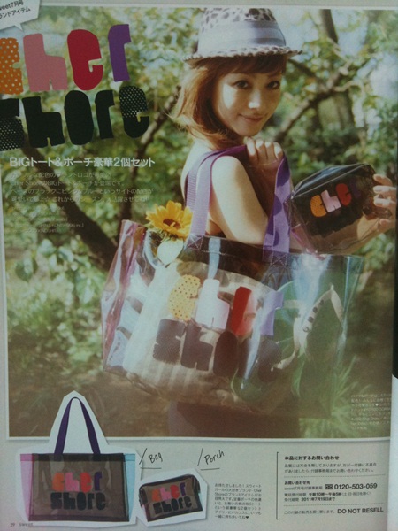 **SWEET Magazine ฉบับเดือน JULY 2011 Cher Shore Tote &Pouch Set แมกกาซีนพร้อมกระเป๋าเซ็ท 2 ใบ ทั้งใบใหญ่ (Tote size :H 28 x W 42 cm)และใบเล็ก(POUCH size :H 12 x W 16 cm)เข้าชุดกันไว้สะพานรับหน้าฝนนี้เลยค่ะ ขายชุดละ 430 บาทเท่านั้น ชุดสุดท้ายแล้วค่ะ