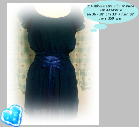 14. สีน้ำเงิน ผ้าซีทรู มีซับด้านในสีดำ อก 36-38" ยาว 33" สะโพก 38"