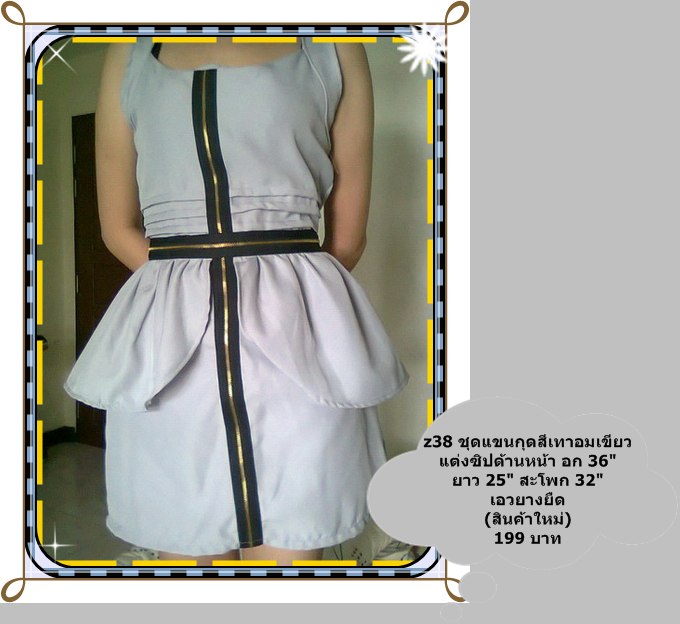 19. แขนกุดสีเทา+เขียว (สินค้าใหม่) แต่งซิปด้านหน้า อก 36" ยาว 25" สะโพก 32" เอวยืด