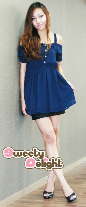 SW1/8 : เดรสหรือเสื้อตัวยาวเปิดไหล่สีน้ำเงิน