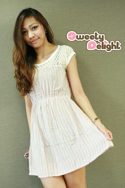 SW1/6 : เดรสลูกไม้สีครีมมีซับในทั้งตัว แขนเป็นผ้ายิดสีเทา ดูหวานๆ ปนเท่ห์ด้วยคะ
