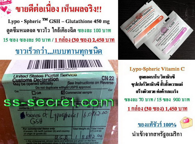 Lypo-spheric วิตามินที่ดูดซึมเข้าร่างกายได้ดีที่สุดในโลก ในตอนนี้<<นั่นเป็นเหตุผลที่ หลายๆคนเรียกว่า Hollywood vitamin เพราะเป็นวิตามินที่เหล่าดาราฮอลีวูด นักการเมือง คนดังๆในโลกเลือกใช้>>ดูดซึมหมดจด ขาวไว ใกล้เคียงฉีด นำเข้าจาก usa