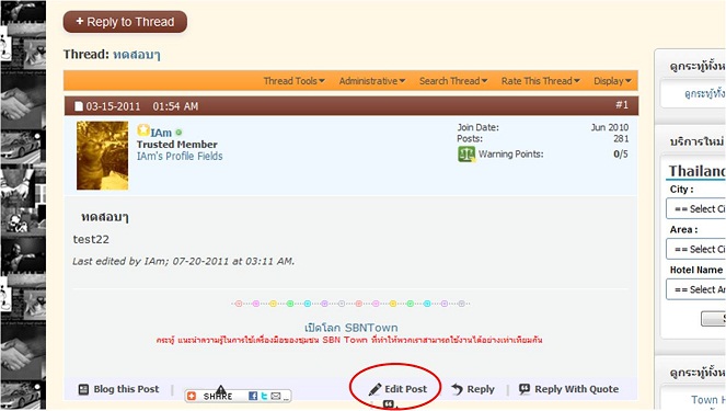 จะแก้ไขข้อความในกระทู้ มีปุ่ม edit post อยู่ตรงนี้ค่ะ