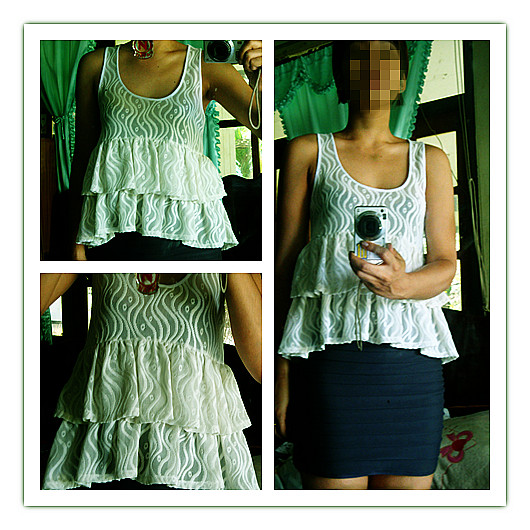 4. เสื้อกล้ามลูกไม้ระบายเป็นชั้นๆ ใส่เป็นเสื้อครอปก็ได้นะคะ ซื้อมาใส่ไป 1 ครั้ง ส่งต่อที่ 120 บาท