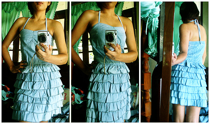 1. เดรสยีนส์ ผูกคอ ระบายเป็นชั้นๆ ไม่เคยใส่นะคะ เก็บไว้อย่างเดียว