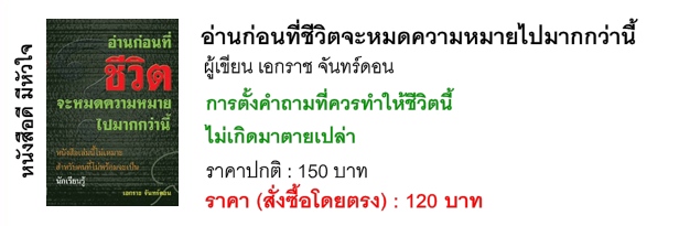 "อ่านก่อนที่ชีวิตจะหมดความหมาย มากไปกว่านี้" เป็นหนังสือที่อธิบายอย่างละเอียด เกี่ยวกับกลไกการทำงานของ "จิต" มนุษย์ ตั้งแต่ "เริ่มสัมผัสกับสิ่งแวดล้อม" จนกระทั่ง "ตัดสินใจ พร้อมทั้งอธิบายแนวคิดที่จะทำให้สามารถประเมินเพื่อตัดสินใจ ไปในทางที่ทำให้ชีวิตเจริญขึ้นได้ หนังสือเล่มนี้ ยังอธิบายถึงกลไกการสร้างความรู้ของมนุษย์ ซึ่งผู้เขียนเองก็ใช้ กระบวน การนี้ สร้างงานเขียน "ความลับของคน" จนได้รับคัดสรรให้เป็น "ความคิดใหม่" จากห้องสมุดแห่งชาติ ประเทศ Australia ทั้งที่ยังเป็นภาษาไทย