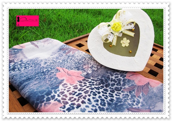 Details: ลายเสือประดับด้วยดอกไม้สีชมพู เนื้อผ้าเป็นชีฟองเนื้อไหม
