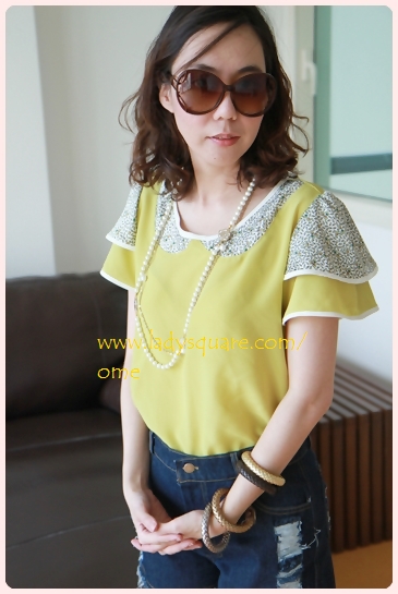 45-02 Simply the best เสื้อผ้าแก้วอย่างสวย สีครีมๆ ช่วงแขนซ้อนงามมากๆ เสื้อทำเป็น 2 ชั้นดูโปร่งๆ ช่วงคอปกเป็นผ้าเย็บซ้อนๆกันเป็นดอกไม้สวยมากๆเลย