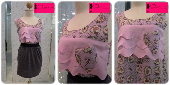 Detail : เสื้อกล้าม เนื้อผ้าเป็นชีฟองเนื้อนิ่ม ลายเด็กผู้หญิงเต้นบัลเล่ย์ มีระบายที่หน้าอก และ กระเป๋ารูปหัวใจ อก 34 นิ้ว