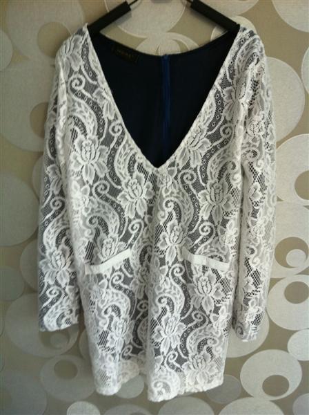 U031 :Used เดรสลูกไม้ทั้งตัว ตรงแขนเสื้อเปนผ้าชีฟองนะคะ มีซับในทั้งตัวค่ะ