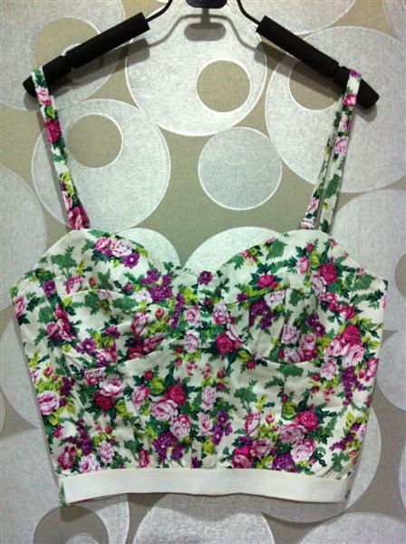 ND03 New : ของใหม่ เสื้อเกาะอกทรงคอร์เซต ลายดอก สไตล์topshop อกได้ถึง33-34