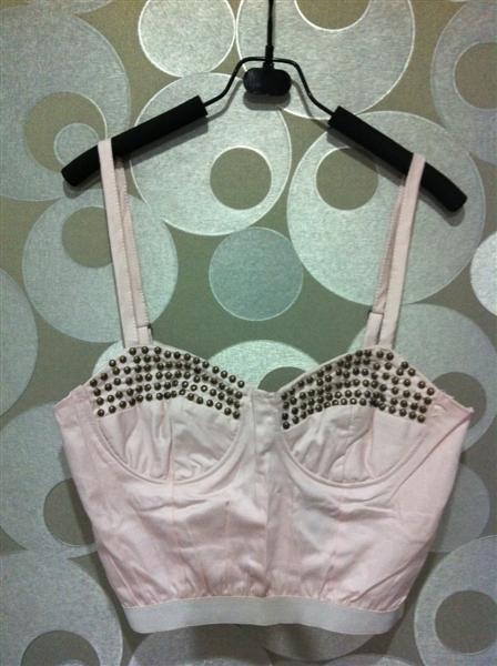 ND07 New:ของใหม่ เกาะอกทรงคลอเซตสไตล์topshop สีชมพูนู้ดปักหมุดอกได้33-34