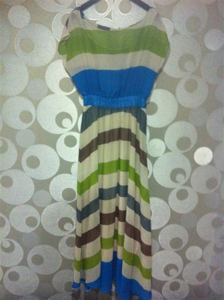 U029 :Used เดรสยาวคอปาดผ้าชีฟอง เอวยางยือมีซับใน