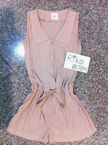 จัมพ์สูทขาสั้นสีชมพูกะปิอ่อน ผูกโบว์ตรงเอว freesize 990 บาท
