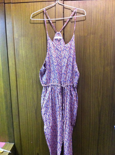 จัมพ์สูทขายาว ลายแดง-น้ำเงิน ผูกโบว์ตรงเอว freesize 790 บาท