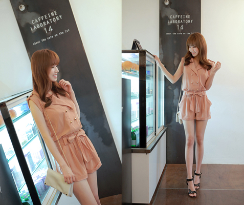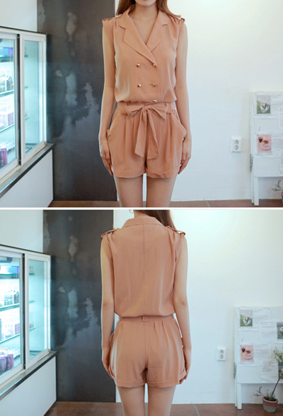 จัมพ์สูทขาสั้นสีชมพูกะปิอ่อน ผูกโบว์ตรงเอว freesize 990 บาท