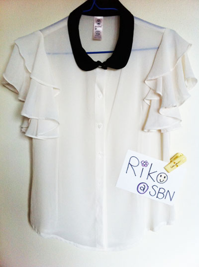 เสื้อชีฟองปกคอบัวแขนระบายสีครีมค่ะ ตัวนี้น่ารักมว๊ากกกกกกกก เห็นในเมียงดงแล้วซื้อเลยไม่คิด