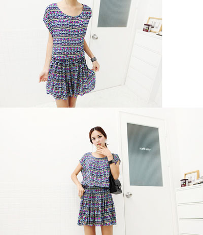 เดรสเกาหลีอัพพลีทผสมชีฟอง ลายจุดสีโอรสหวานสุดๆ