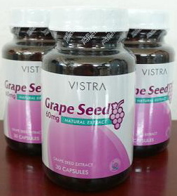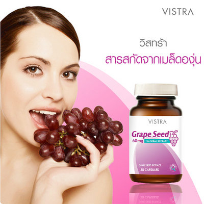 Vistra Grape Seed 60mg. สารสกัดเมล็ดองุ่น ประสิทธิภาพมากกว่าวิตามินซี20เท่า และวิตามินอี50เท่า ลดเส้นเลือดขอด เพื่อผิวขาวเนียนใสอมชมพู ราคาป้าย 385 บาท เหลือเพียง 240 บาท